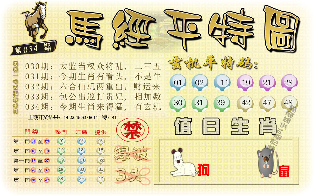 033期: 鬼才平特★平特一肖★ 【狗】 开 08 准
